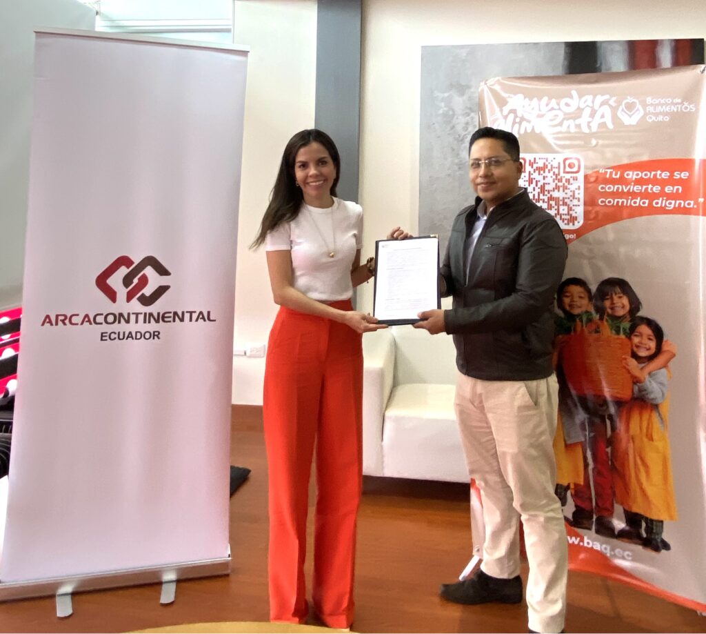 En línea con su compromiso con el bienestar social y el desarrollo sostenible de las comunidades, Arca Continental Ecuador fortalece su colaboración con banco de alimentos en distintas regiones del país. Recientemente, la compañía suscribió un convenio de colaboración con el Banco de Alimentos de Quito (BAQ), con el propósito de contribuir a la seguridad alimentaria y la reducción de desperdicios, iniciativas que forman parte de su modelo de negocio sostenible para generar un impacto social positivo.