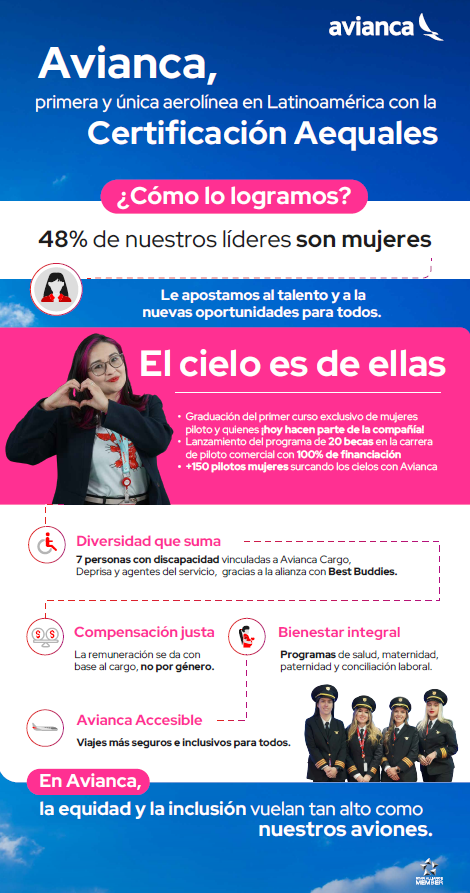 “Ser la primera aerolínea en Latinoamérica en obtener la certificación de Aequales es una confirmación de que en Avianca continuamos construyendo una cultura en la que cada persona se siente bienvenida, escuchada y valorada. Esta certificación refleja nuestro compromiso con un proceso continuo para generar espacios donde todos puedan ser auténticos, crecer y aportar lo mejor de sí, porque cuando las empresas cuidan y escuchan a sus colaboradores, volamos más alto y abrimos oportunidades para todos” afirmó Maria Carolina Cortés, vicepresidente de comunicaciones corporativas y reputación de Avianca.