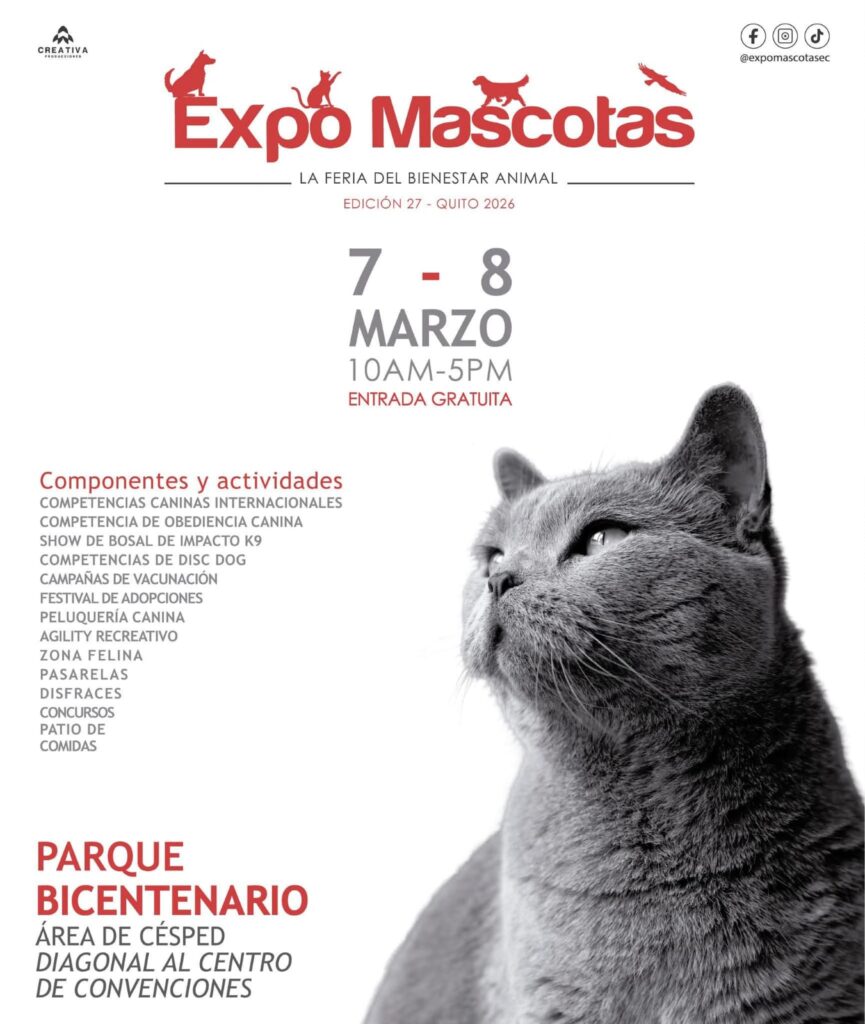 La feria de bienestar animal más importante del país, Expo Mascotas – Edición 27, se realizará este 7 y 8 de marzo de 2026, de 10h00 a 17h00, en el Parque Bicentenario, en el área de césped diagonal al Centro de Convenciones. La entrada será gratuita para todo el público.