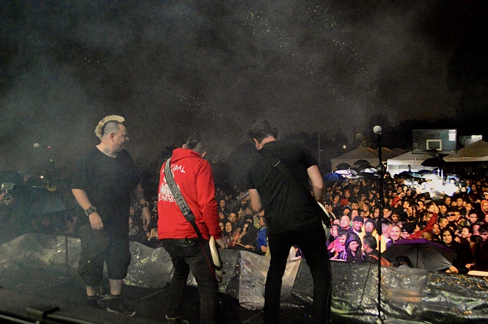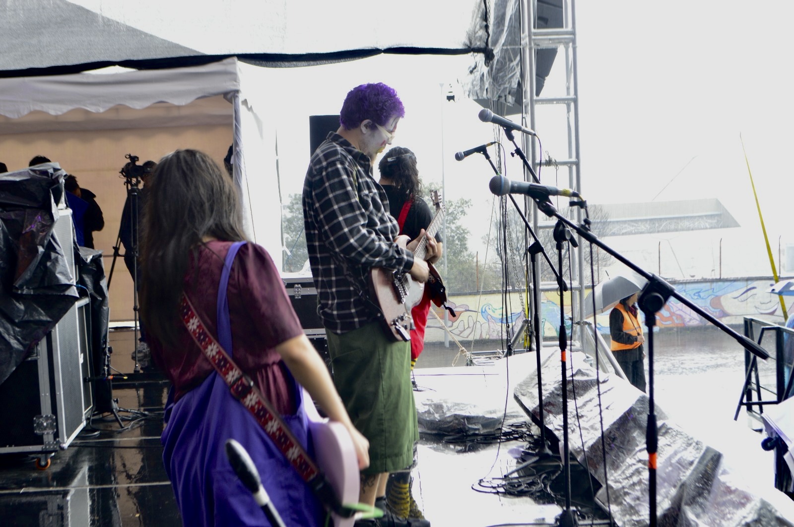 Las bandas tocaron bajo una lluvia persistente, en un escenario que resistió el clima sin pausas. El público, de pie sobre la cancha de cemento del parque, permaneció firme durante toda la jornada. Ni el frío ni el agua frenaron la energía ni el sentido del encuentro.