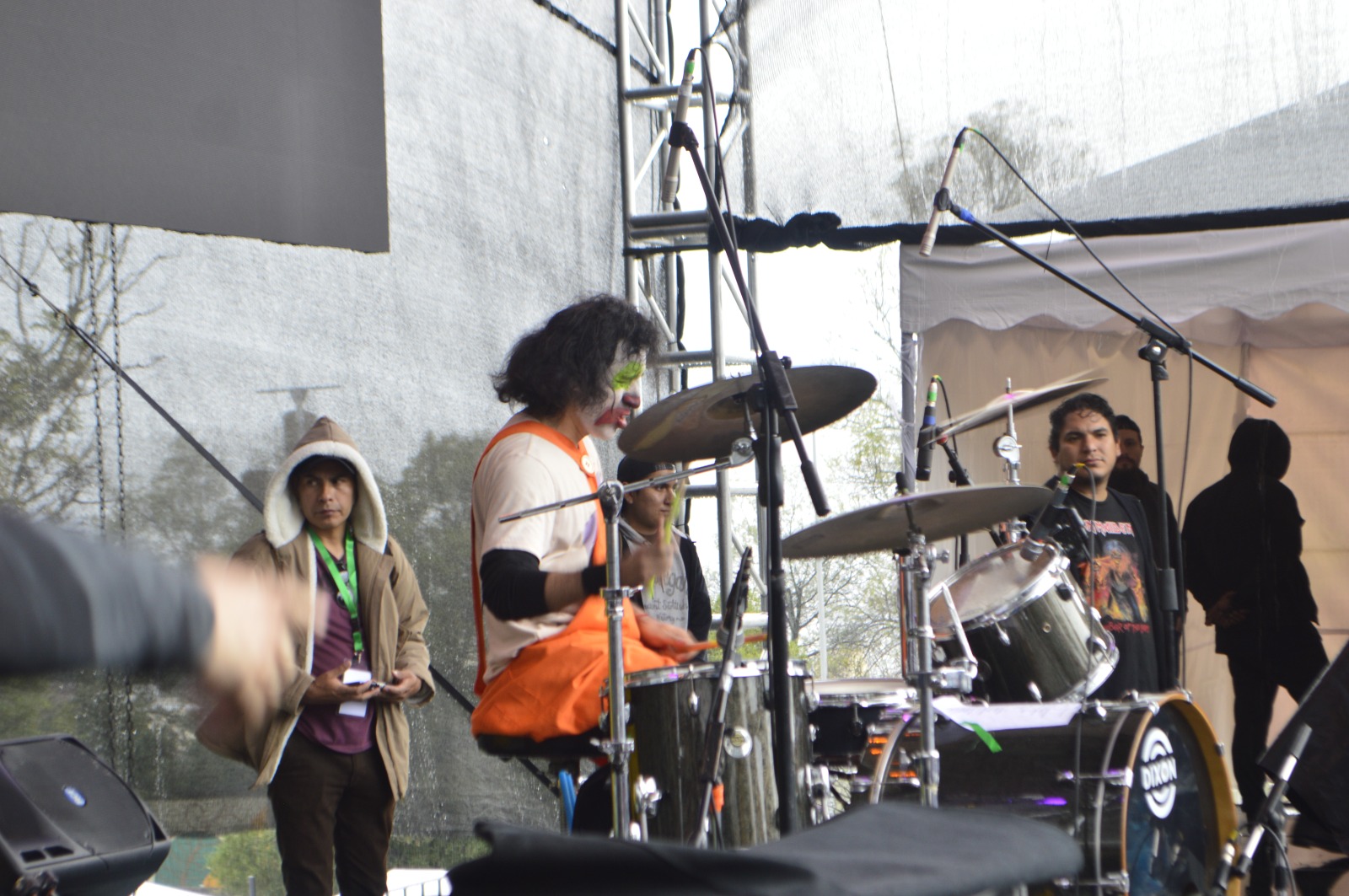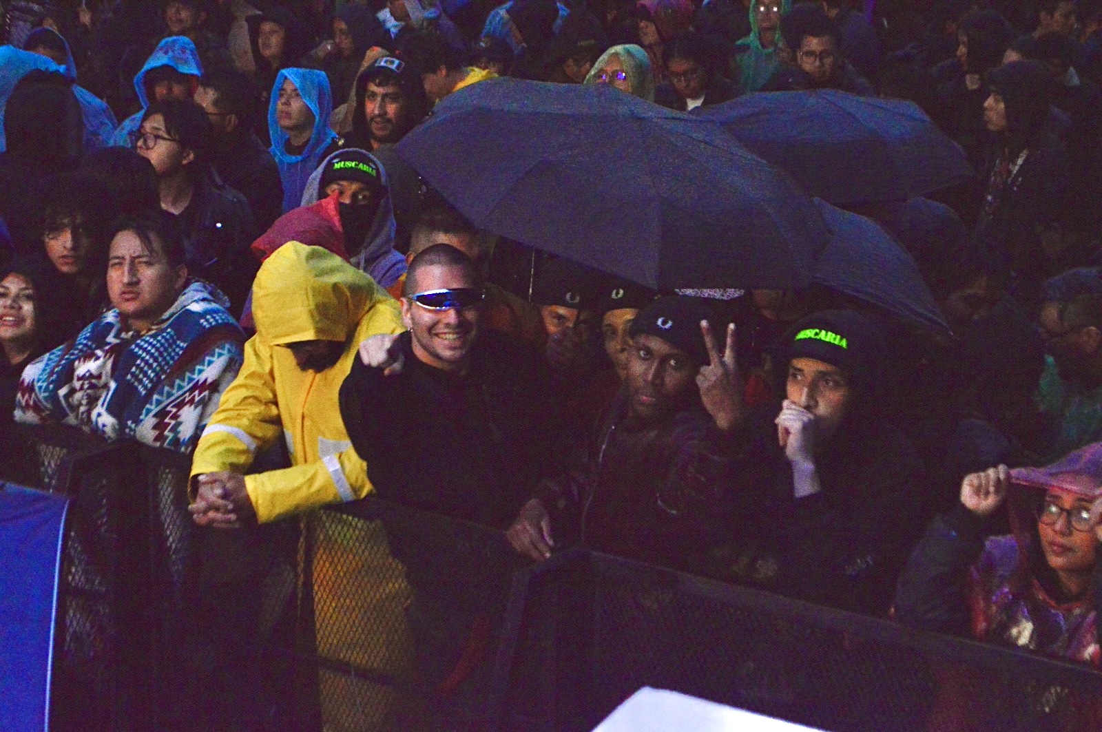 Muscaria, pionera del hardcore ecuatoriano desde los noventa, apareció avanzada la tarde y protagonizó uno de los momentos más potentes: una multitud cantando bajo la lluvia temas que ya forman parte del repertorio histórico del rock nacional.