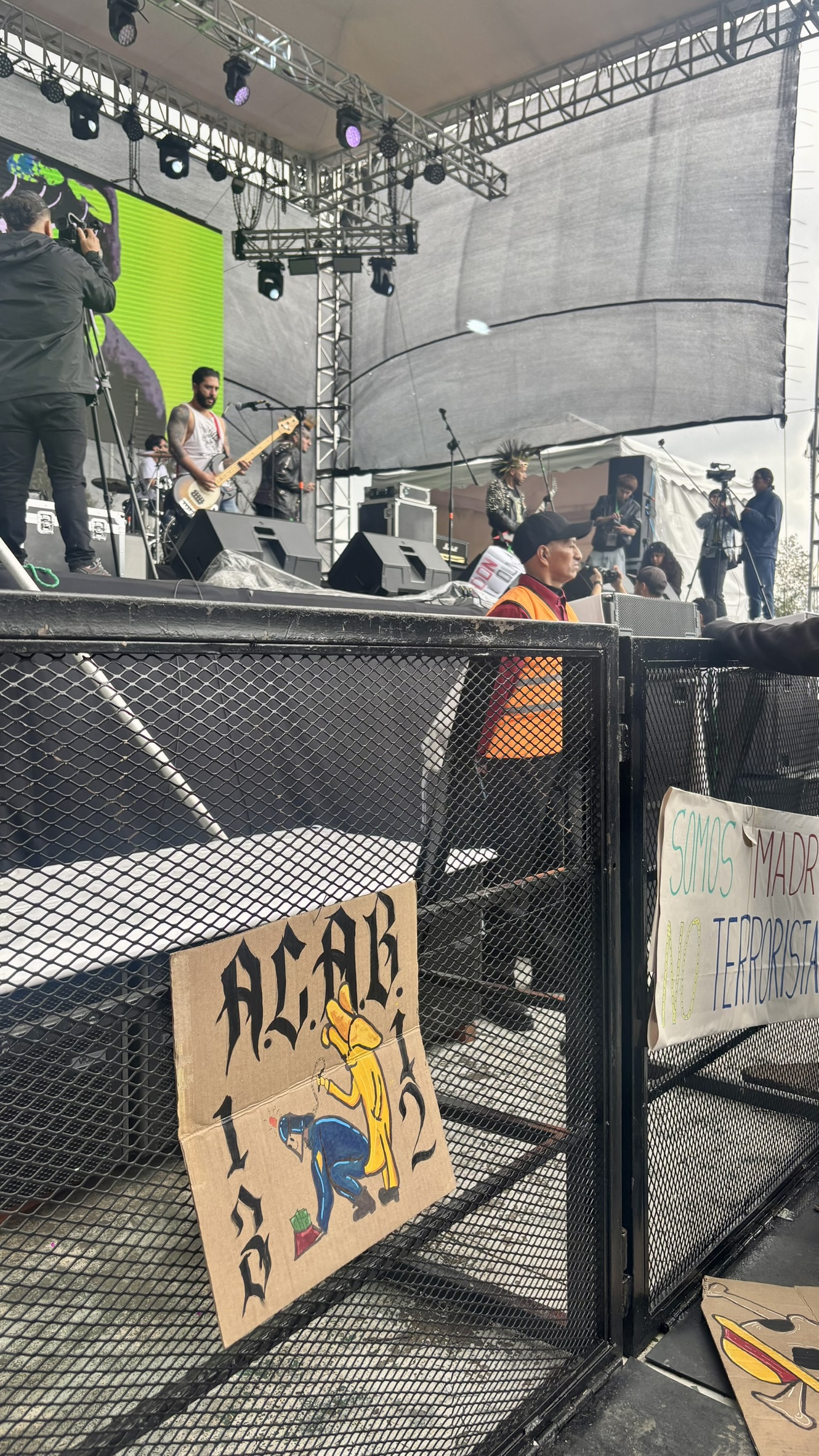 En medio de un país que atraviesa manifestaciones y un paro nacional, el festival también se convirtió en una forma de expresión colectiva. Entre canciones, la gente levantó carteles y gritó consignas, recordando que la música independiente no se separa de la realidad social que la rodea.